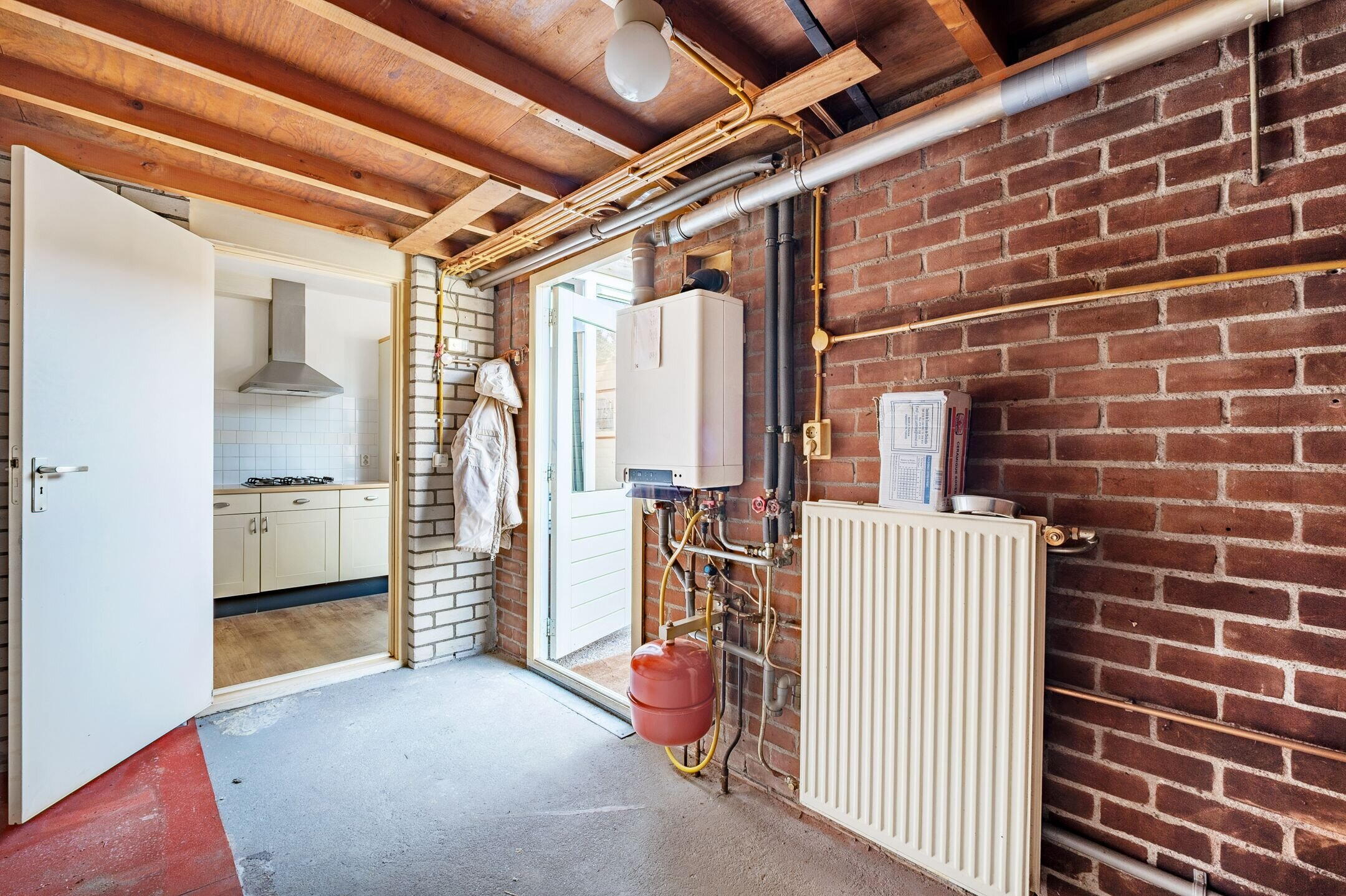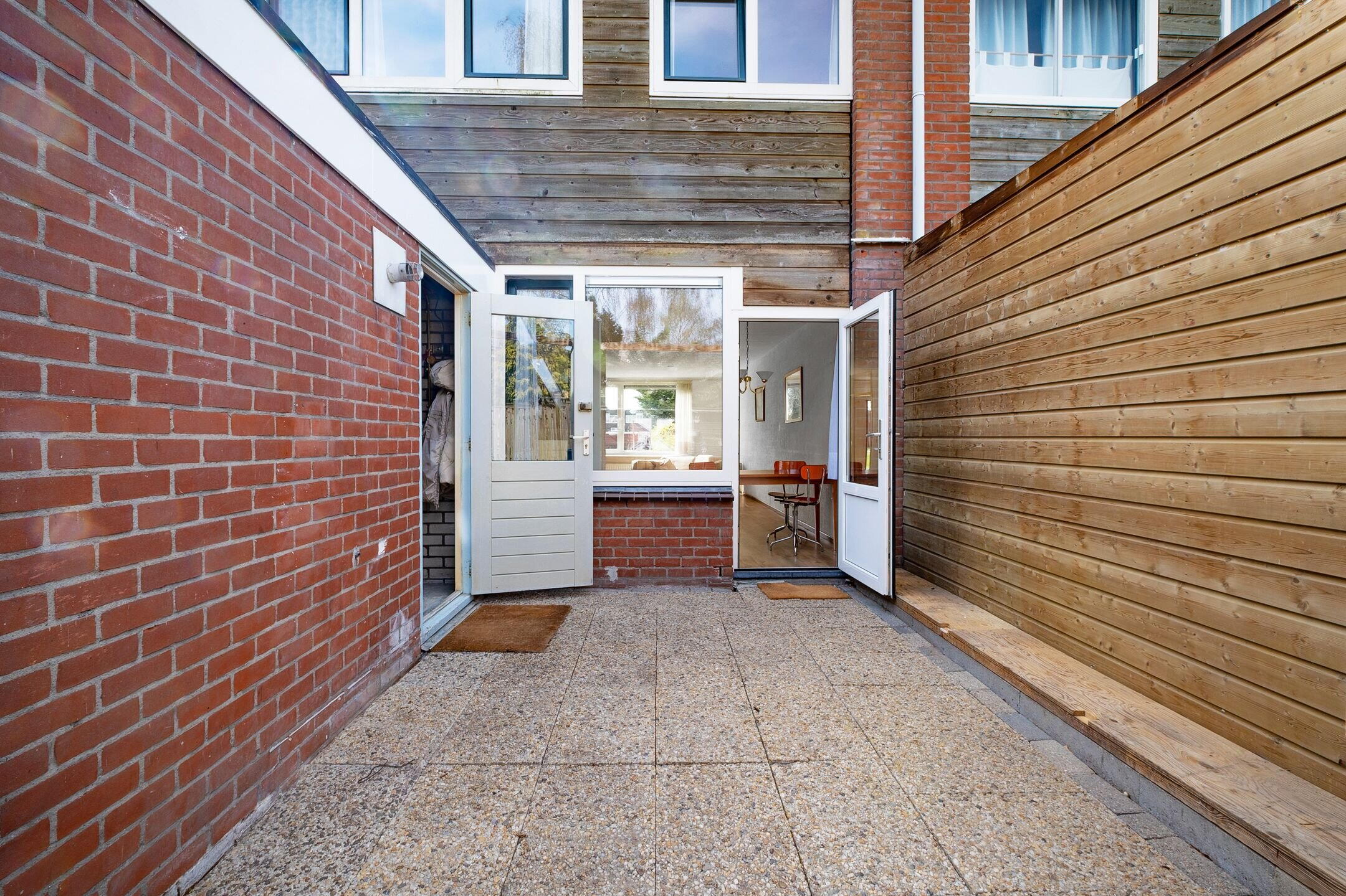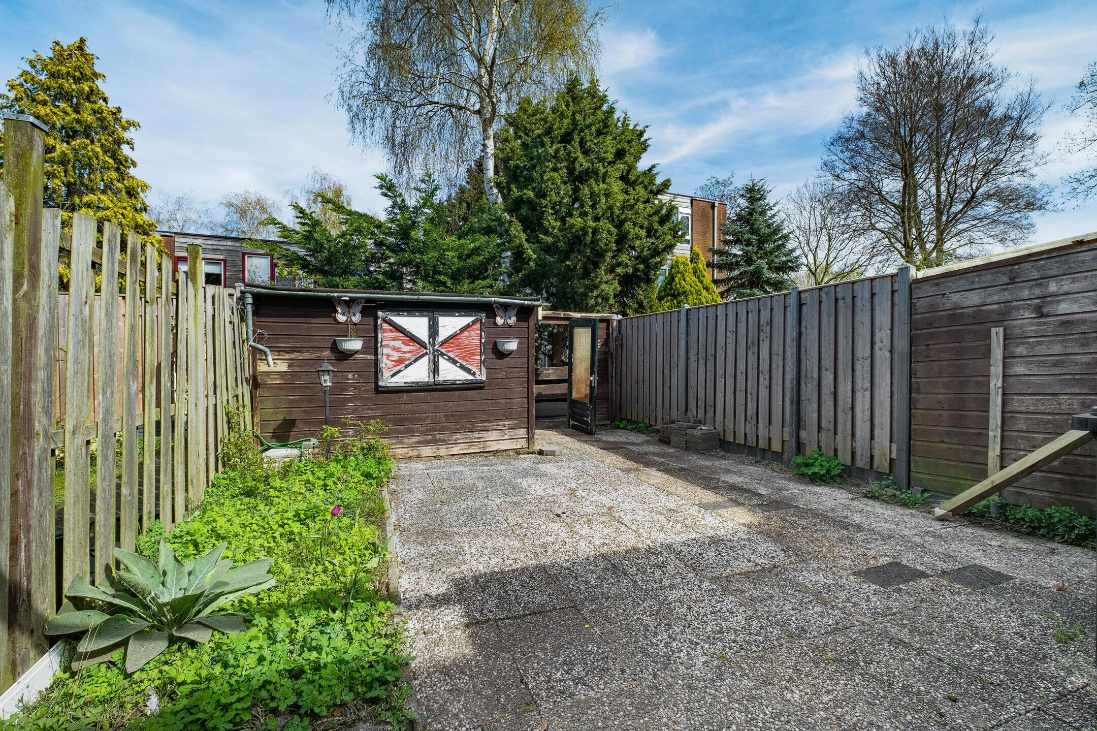 De achtertuin is groot, met ruimte voor een hobby of een fraai aangelegde tuin.