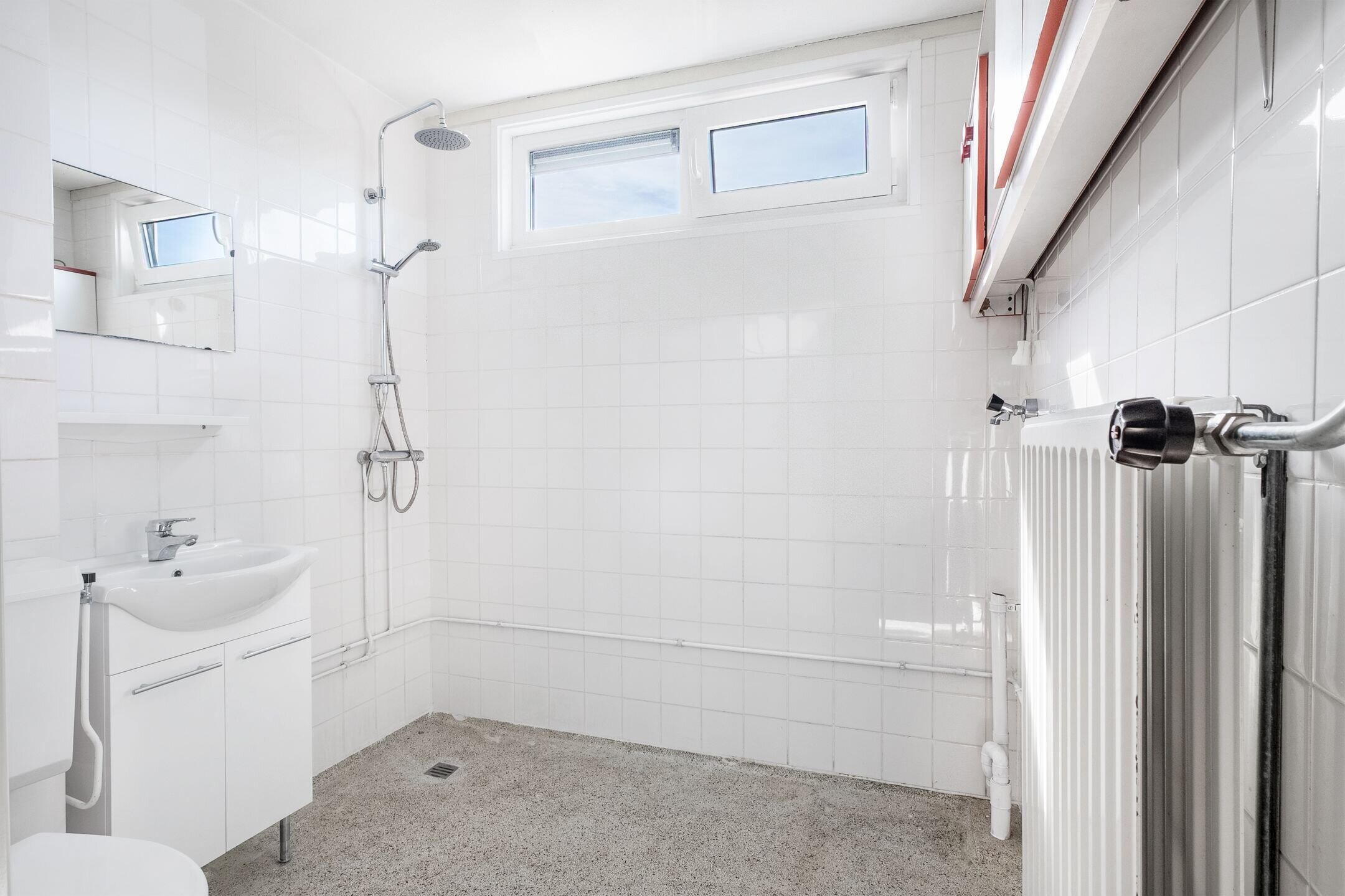 From the entryway, you take the stairs upstairs. The spacious master bedroom is at the front, while the two other bedrooms are at the back. The bathroom is simply yet practically furnished.