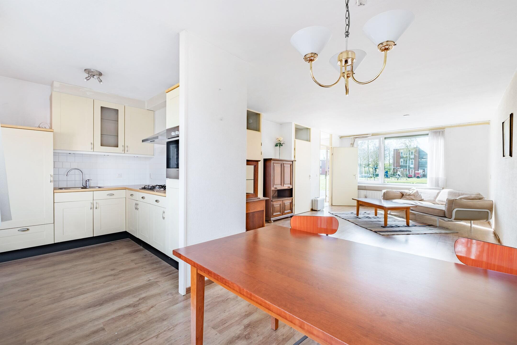 Bij binnenkomst in de woning hangt u uw jas op en loopt u door naar de woonkamer. Even snel de boodschappen wegzetten in de keuken en wat te drinken nemen. De huiskamer en tuin zijn uitnodigend.